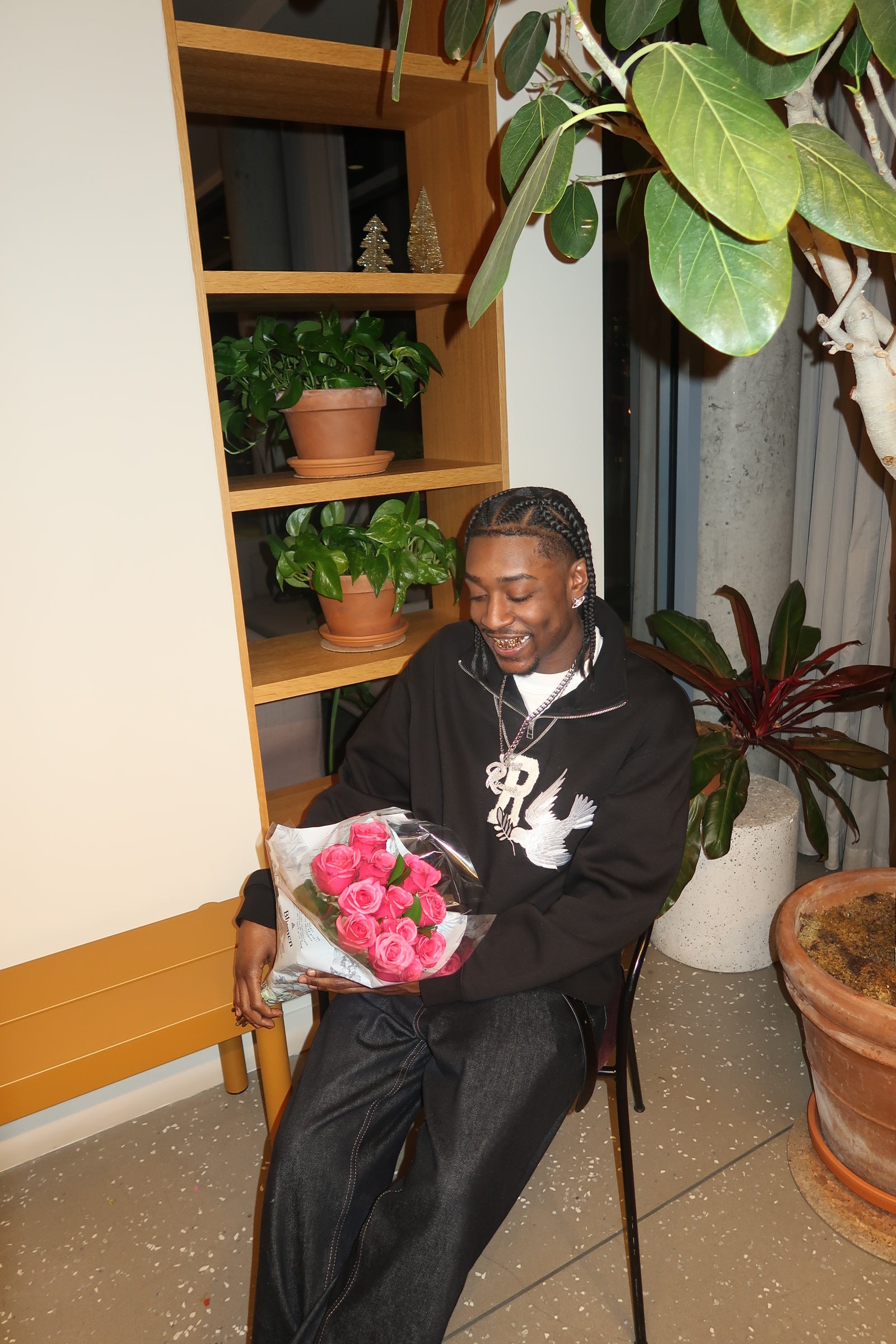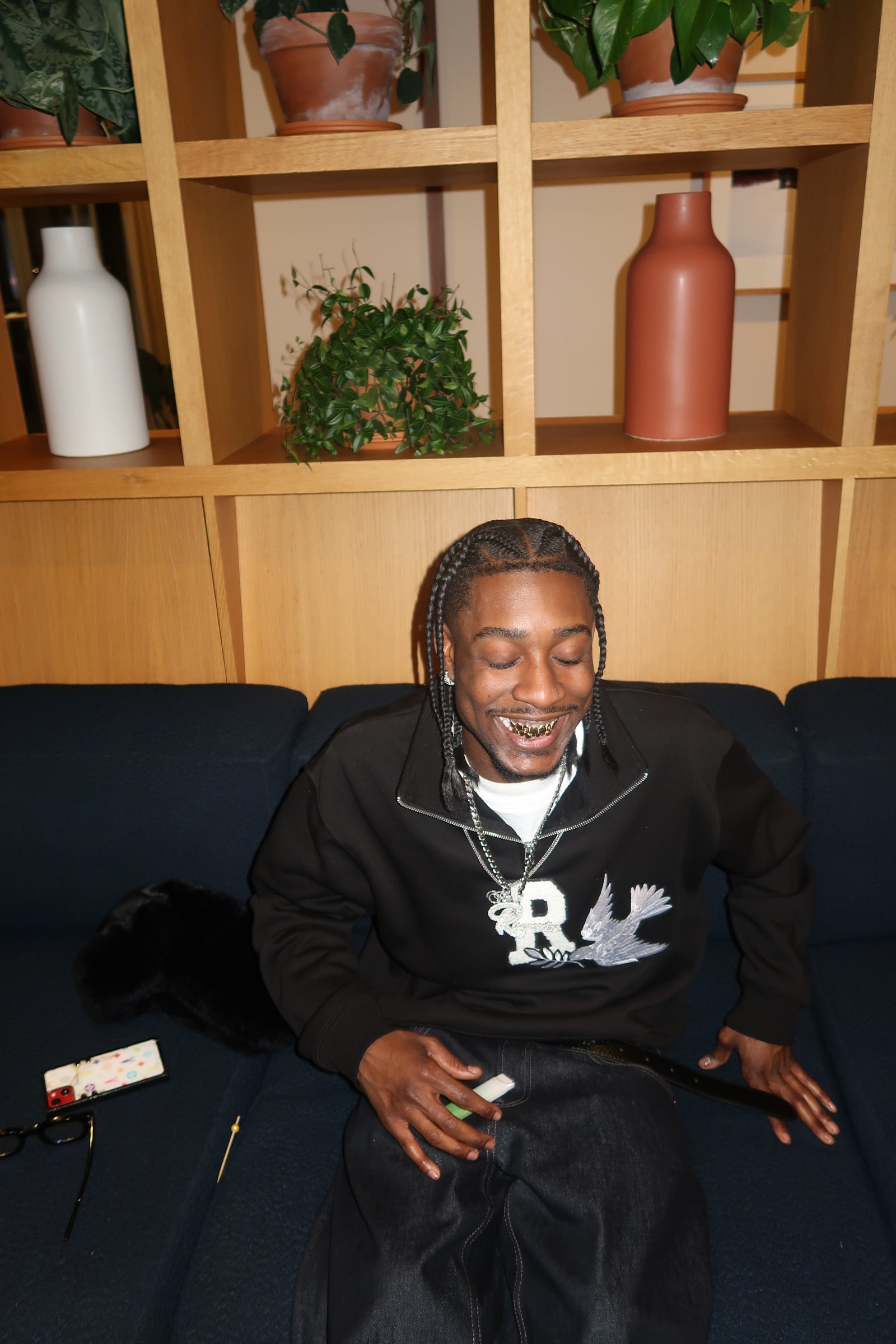 - Custom chenille “R” patch with metallic embroidery